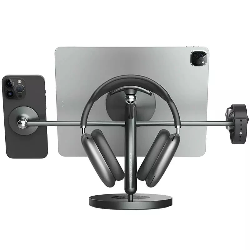 یکی از جدید ترین محصولات برند نیلکین طراحی شده سال 2023 پایه نگهدارنده آیپد و تبلت، گوشی موبایل، ساعت هوشمند و هچنین هدست نیلکین مدل SnapBranch Modular Device Station. پرکابرد ترین محصول برند نیلکین برای محیط های مختلف به خصوص محیط های اداری! این محصول یک پایه نگهدارنده شاخه به شاخه با قابلیت تنظیم در 3 شک مختلف است که بسته به فضای در اختیار شما میتوانید به سادگی هرچه تمام تر آنرا شخصی سازی کنید. در حالت اول شما یک پایه نگهدارنده آیپد یا تبلت خواهید داشت که توسط SnapSafe و یا برچسب های مگنتی SnapLink ( در شرایطی که تبلت شما فاقد SnapSafe باشد) به صورت بسیار مطمعن روی آن قرار میگیرد و امکان چرخش تا 90 درجه برای آن فراهم است . نگرانی بابت سقوط تبلت از روی پایه نگهدارنده کاملا بی مورد است چراکه طبق آزمایشات تا وزن بالغ بر 2 کیلوگرم تست شده و هیچ مشکلی وجود نداشته است . حتی برای افرادی که قصد طراحی، مشاهده فیلم و یا مطالع دارن نیز این پیاه نگهدارنده بسیار مناسب است . در حالت دوم با افزودن شاخه های کناری میتوانید گوشی همراه خود را در کنار تبلت داشته باشید و یا اپل واچ خود را در سمت مخالف روی شاخه مختص به خود قرار دهید . البته همه این ها به کمک تکنولوژی SnapSafe امکان پذیر است اما اگر هم گوشی همراه شما فاقد آن باشد هیچ مشکلی نخواهید داشت چراکه نیلکین برای شما یک برچسب مغناطیسی SnapLink قرار داده است تا گوشی همراه شما از این تکنولوژی بی بهره نماند. میتوانید روی شاخه مختص به اپل واچ یا گوشی همراه دستگاه های خود را آزاده حرکت دهید و در زاویه ای مناسب از آن استفاده کنید . در حالت سوم خود که یک پایه نگهدارنده کامل در اختیار شما قرار خواهد گرفت شاخه ای در قسمت پشتی اضافه میشود که به طور معمول مختص انواع مختلف هدست ها هست و به صورت ثابت قرار گرفته است . یکی از مهم ترین ویژگی های این پایه نگهدارنده جنس و کیفیت بالای ساخت آن است که ضمن زیبایی و کارآمدی، از متریال اولیه عالی ساخته شده است . قسمت زیرین این پایه نگهدارنده به صورتی طراحی شده است که بسیار محکم با پد ضد لغزشی که دارد بر روی سطح قرار میگیرد و روی آن نخواهد لغزید. همچنین یکی از بهترین ویژگی های آن چرخش 360 درجه آن است که میتوانید آن را به سادگی بچرخانید و زاویه مورد نظر خود را تنظیم کنید.